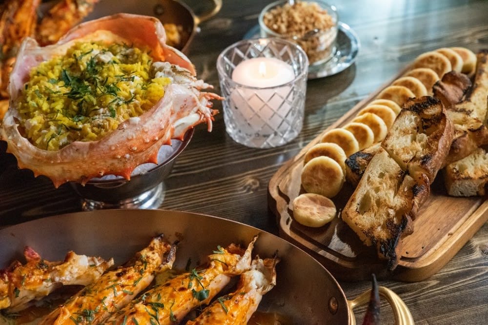 Monarch. Grab a drink from the full bar and have a seat in the expansive space. Michelin star chef Danny Grant and his team cook for this luxurious Italian restaurant. Order from a menu of steaks to share, chilled and raw offerings, salads, house-made pasta, entrées, sides, and a selection of the butcher's reserve. There are some vegan options available, as well. Don't expect a standard steak here, each one is wood-fired on a hearth which sits at the heart of the restaurant. You'll never go wrong with Monarch's ultimate specialty meal; a wood-roasted Alaskan King Crab served with an assortment of sides.