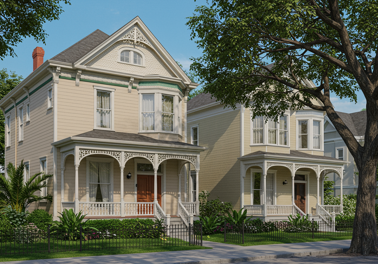 Victorian homes in Dallas exude unbelievable charm. Combining their antique sensibilities with modern-day materials, current Dallas homes inspired by Victorian architecture range from quaint Queen Annes to sweeping hillside mansions. Since the late 19th century, this style has become extraordinarily prominent throughout the country. Often boasting an asymmetrical shape with wrap-around porches, arched windows, peaked gables, and steep rooflines, Victorian homes are some of the most instantaneously recognizable. This style truly makes a statement! For years, Victorian-style homes have boasted elaborate woodwork and decorative trim, which often results in comparing them to gingerbread houses. It’s not uncommon to paint the horizontal siding of a Victorian house in multiple hues to accentuate its varied dimensions and ornate design.