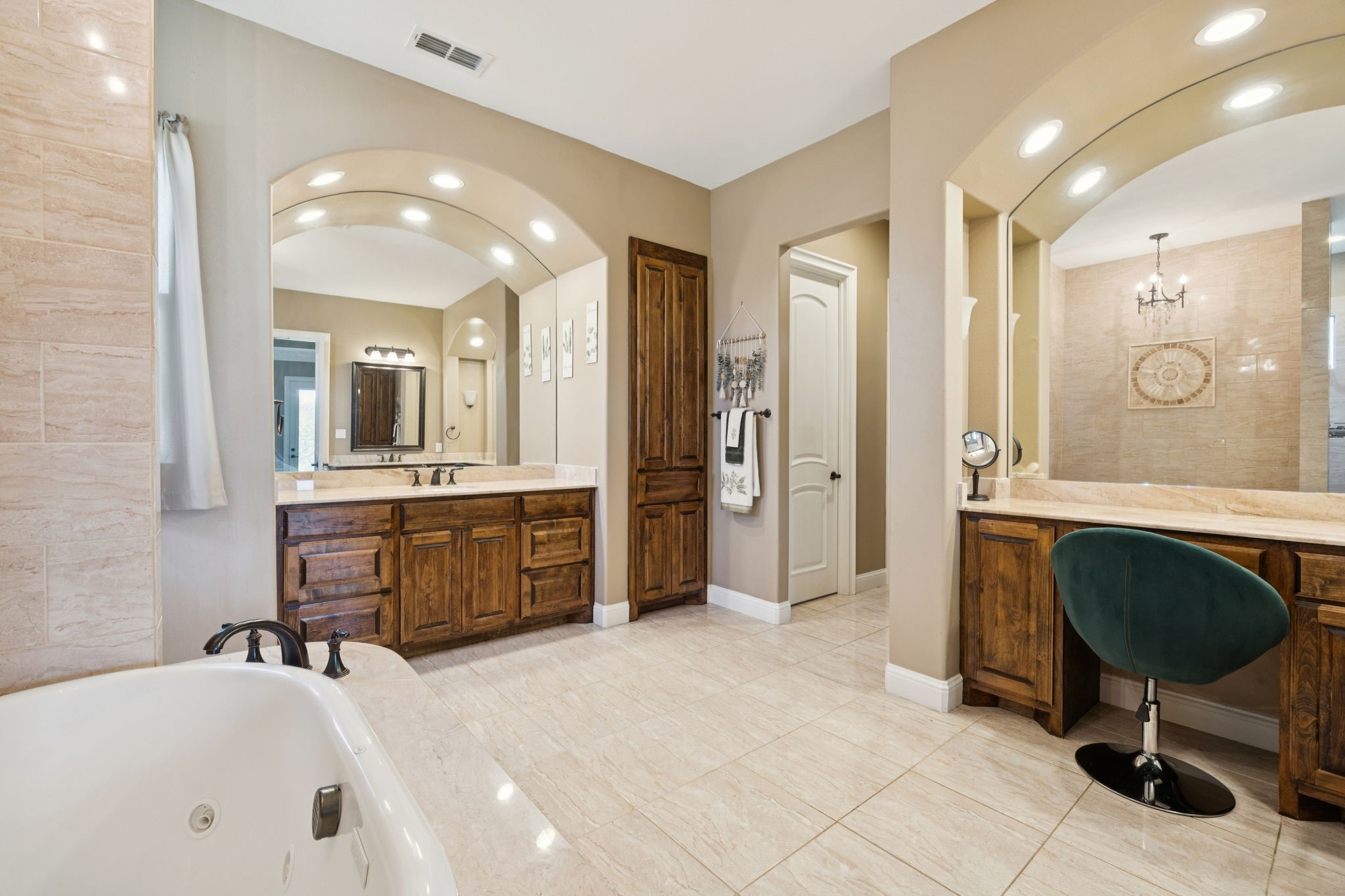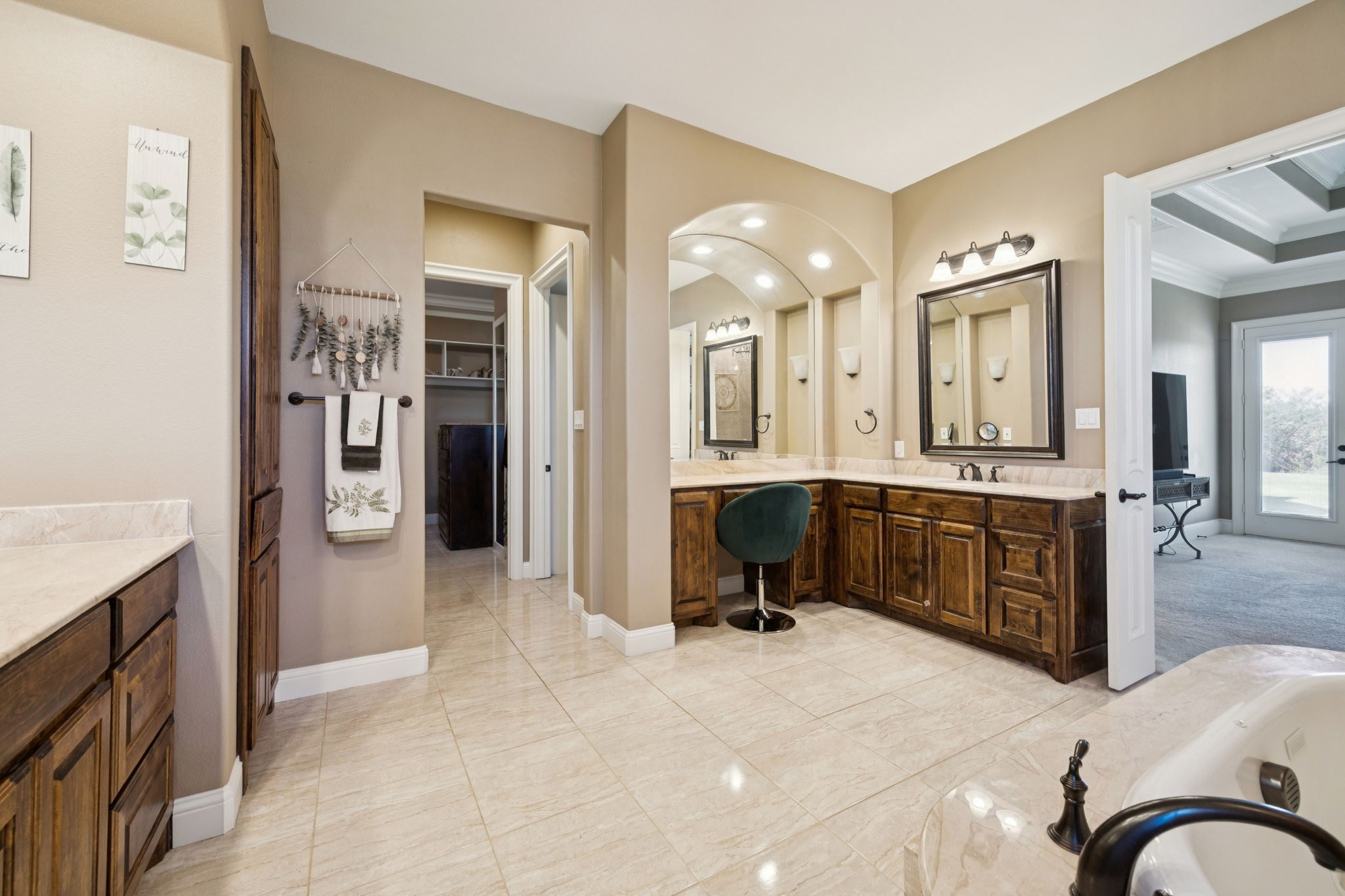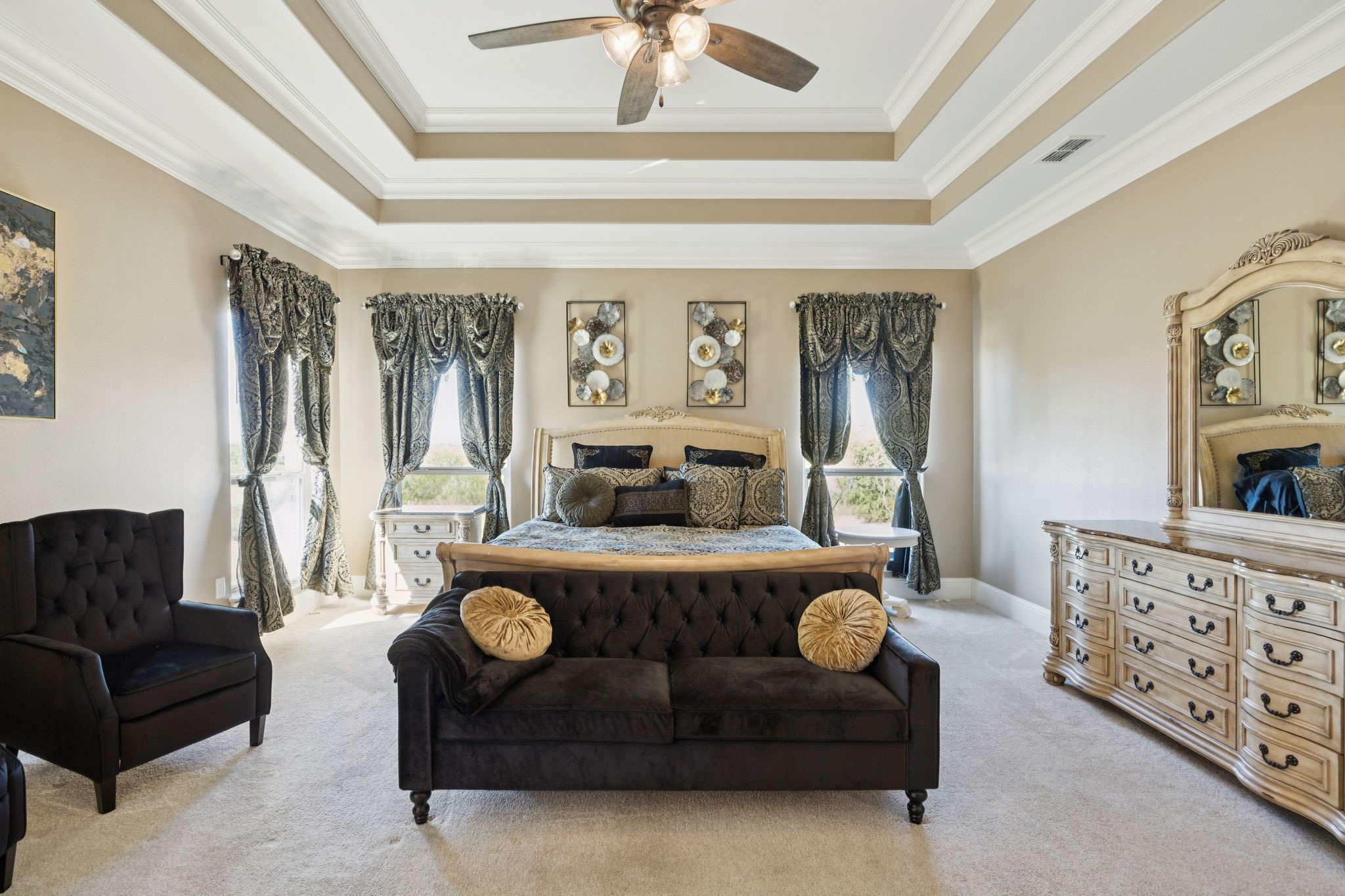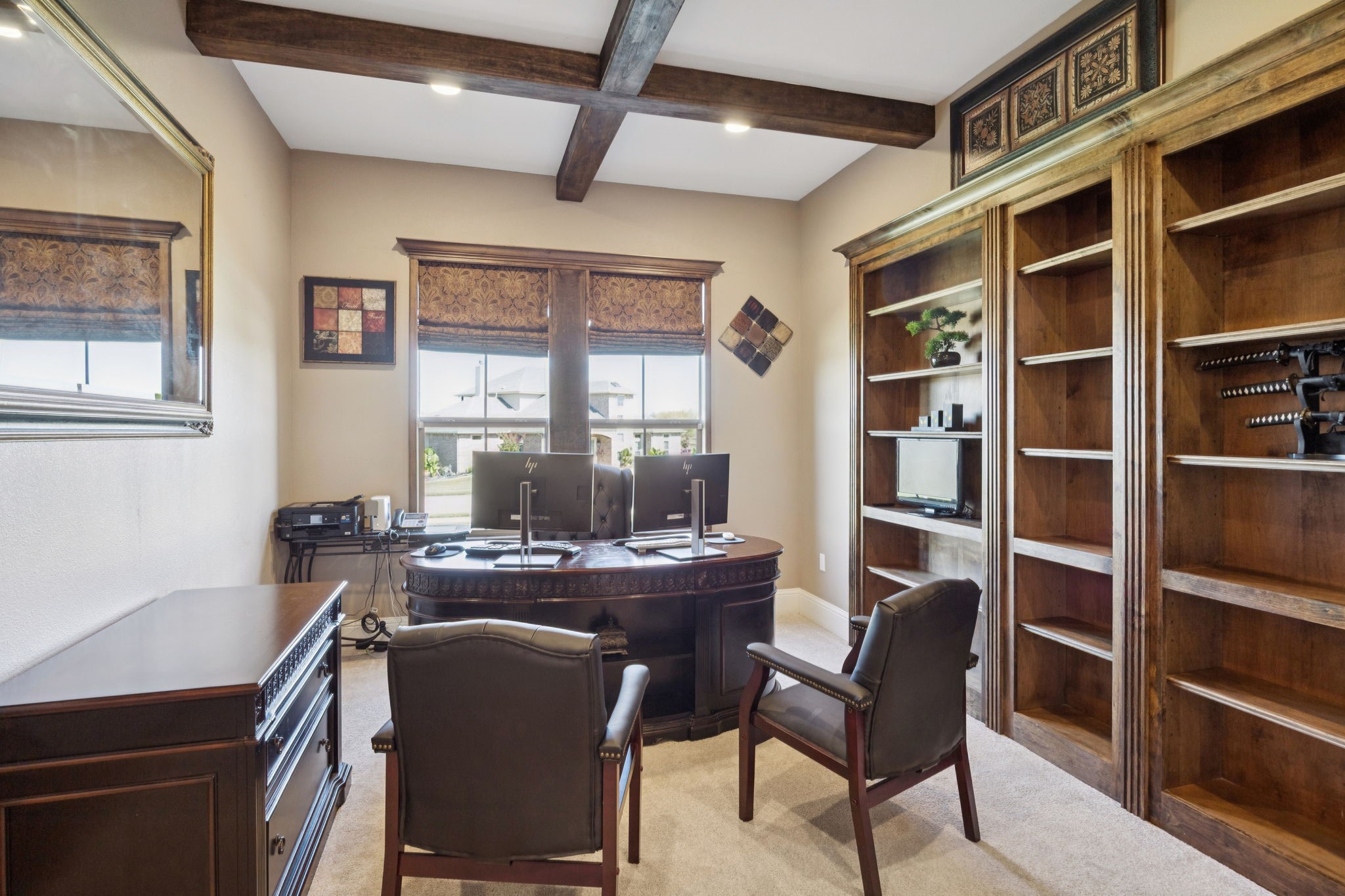 1 Acre, Corner Lot, in Gated Community!!! Step inside to discover an open, thoughtfully designed floor plan filled with natural light, soaring ceilings, and rich architectural details. The gourmet kitchen is a chef's dream, featuring top-of-the-line appliances, custom cabinetry, and a built-in coffee bar -- ideal for effortless entertaining. The primary suite provides a tranquil retreat with a spa-like bathroom and serene views.