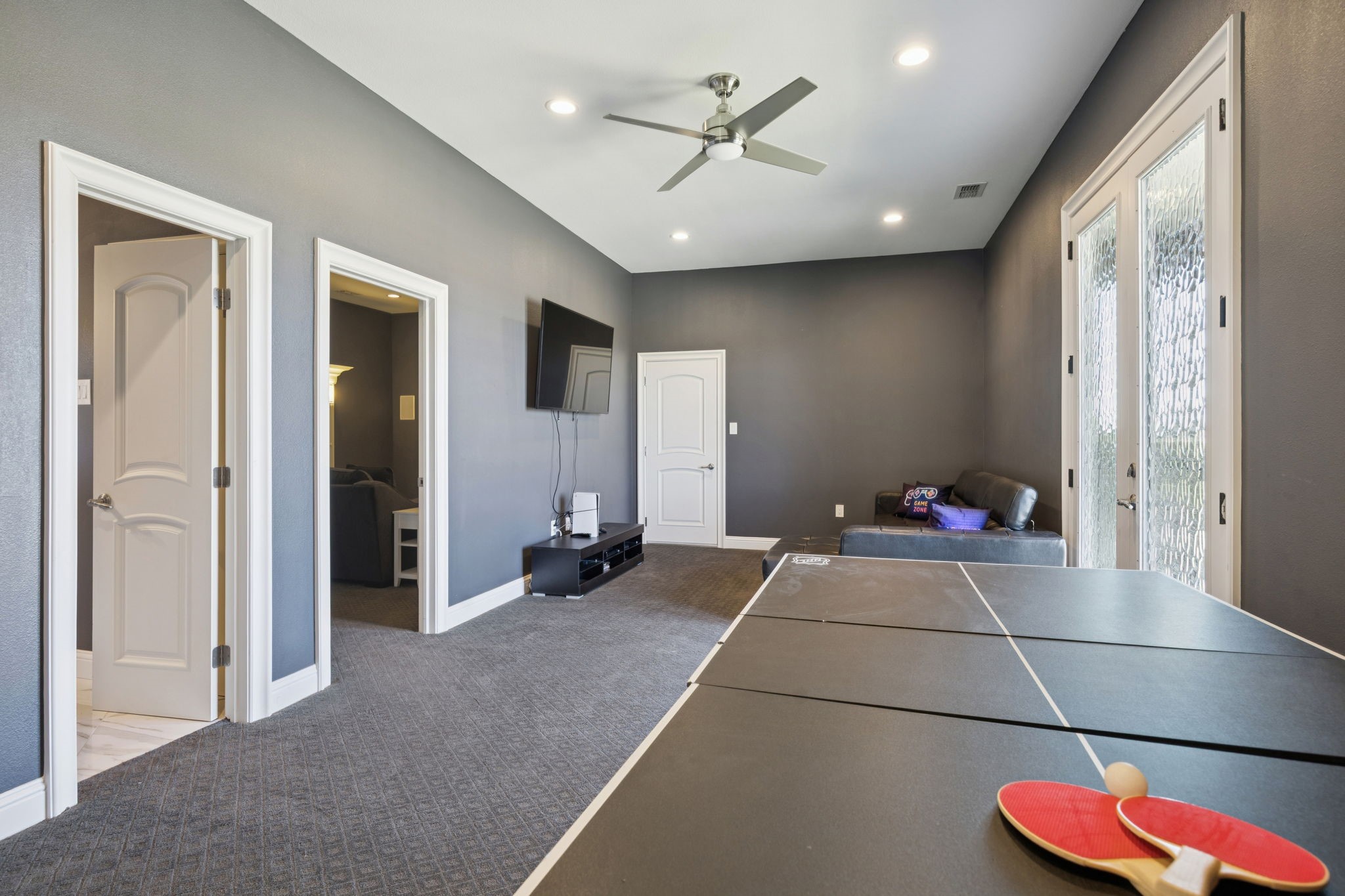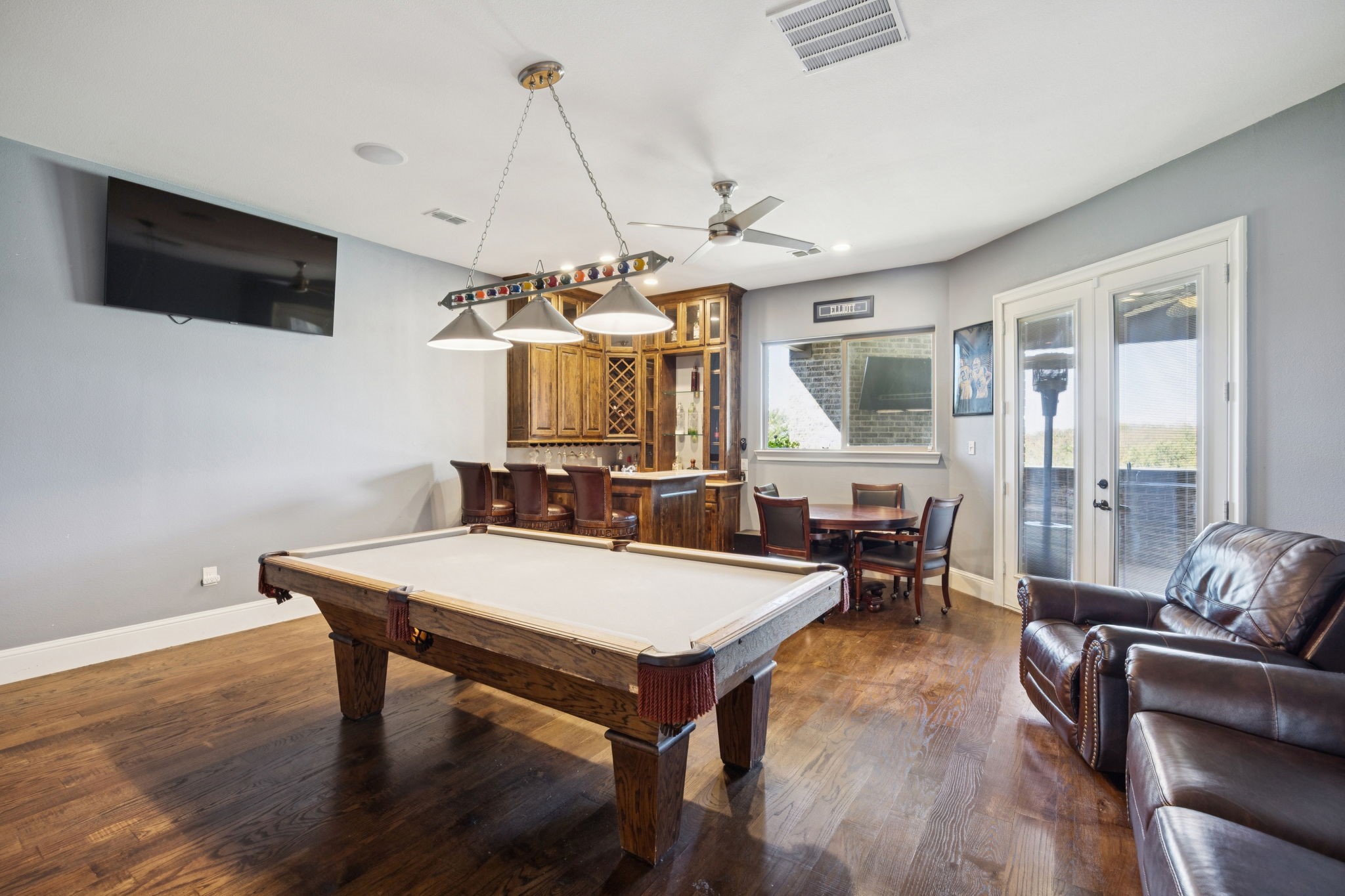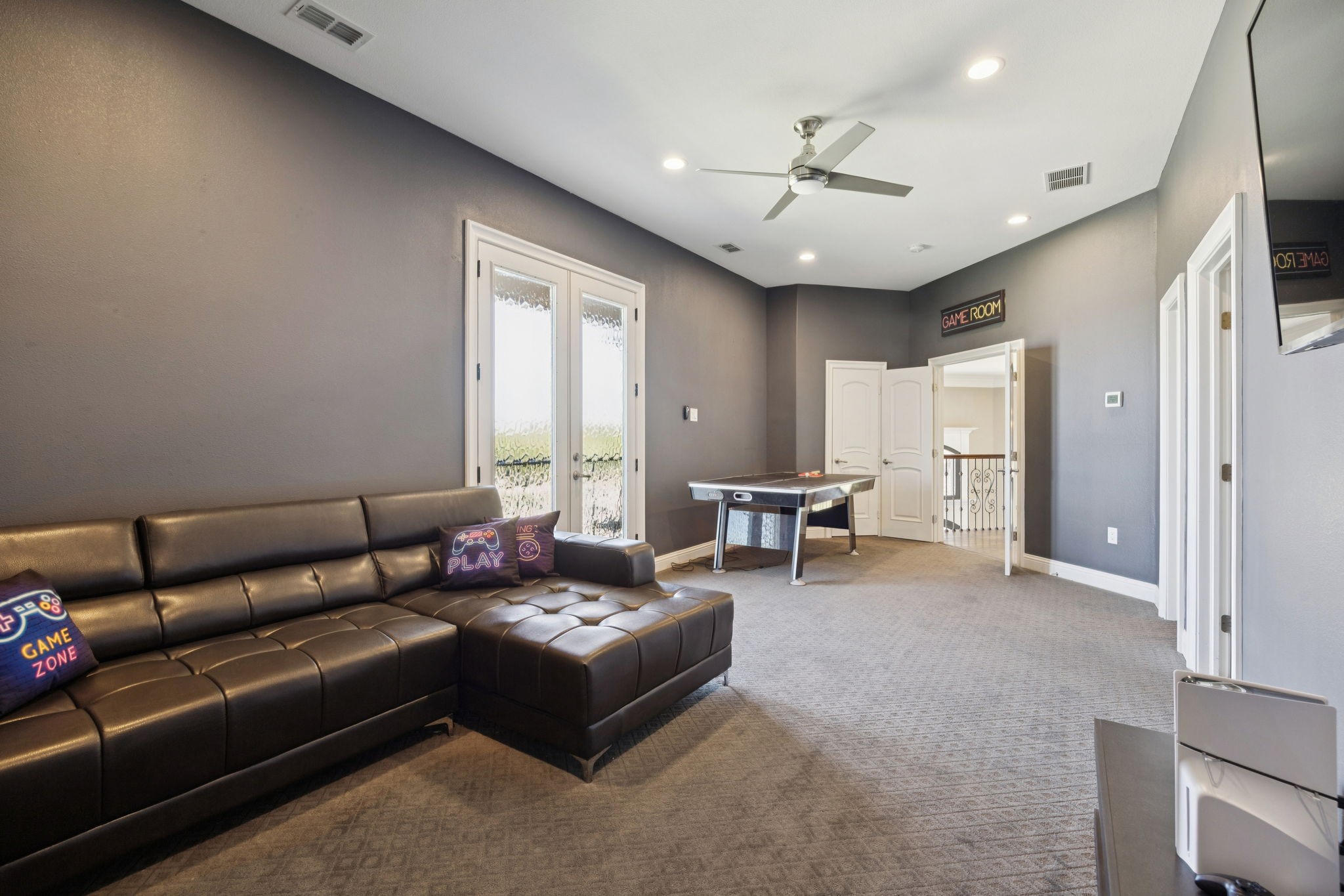 Perfect for multigenerational living, the home includes two bedrooms on the first floor, and game room that leads out to the oversized patio. Outside, enjoy the peaceful beauty of Lake Ridge on your spacious cul-de-sac lot, surrounded by rolling hills, mature trees, and expansive outdoor spaces perfect for entertaining or relaxing in privacy. The three-car garage and extended driveway provide ample parking for guests. Movie theatre and additional game room with balcony access upstairs.