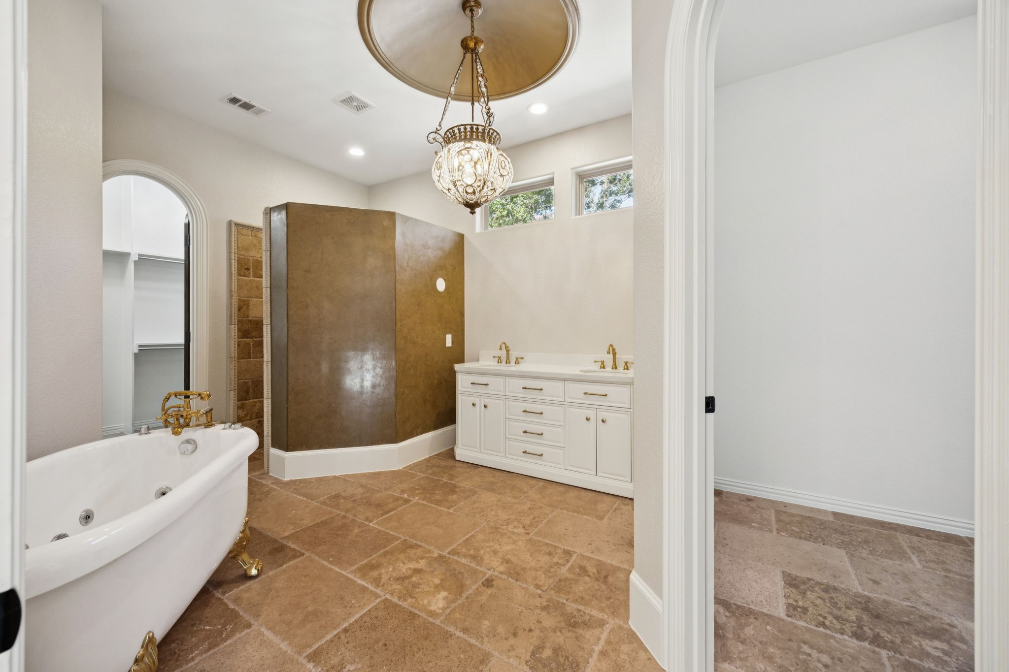 Featuring 4 spacious bedrooms (2 on the main level and 2 upstairs) plus flex spaces for an office, gym, or playroom. The primary suite on the first floor boasts a spa-inspired bath with a walk-in shower, his-and-her closets, private water closet with bidet, claw-foot jacuzzi tub, and new double vanities.
