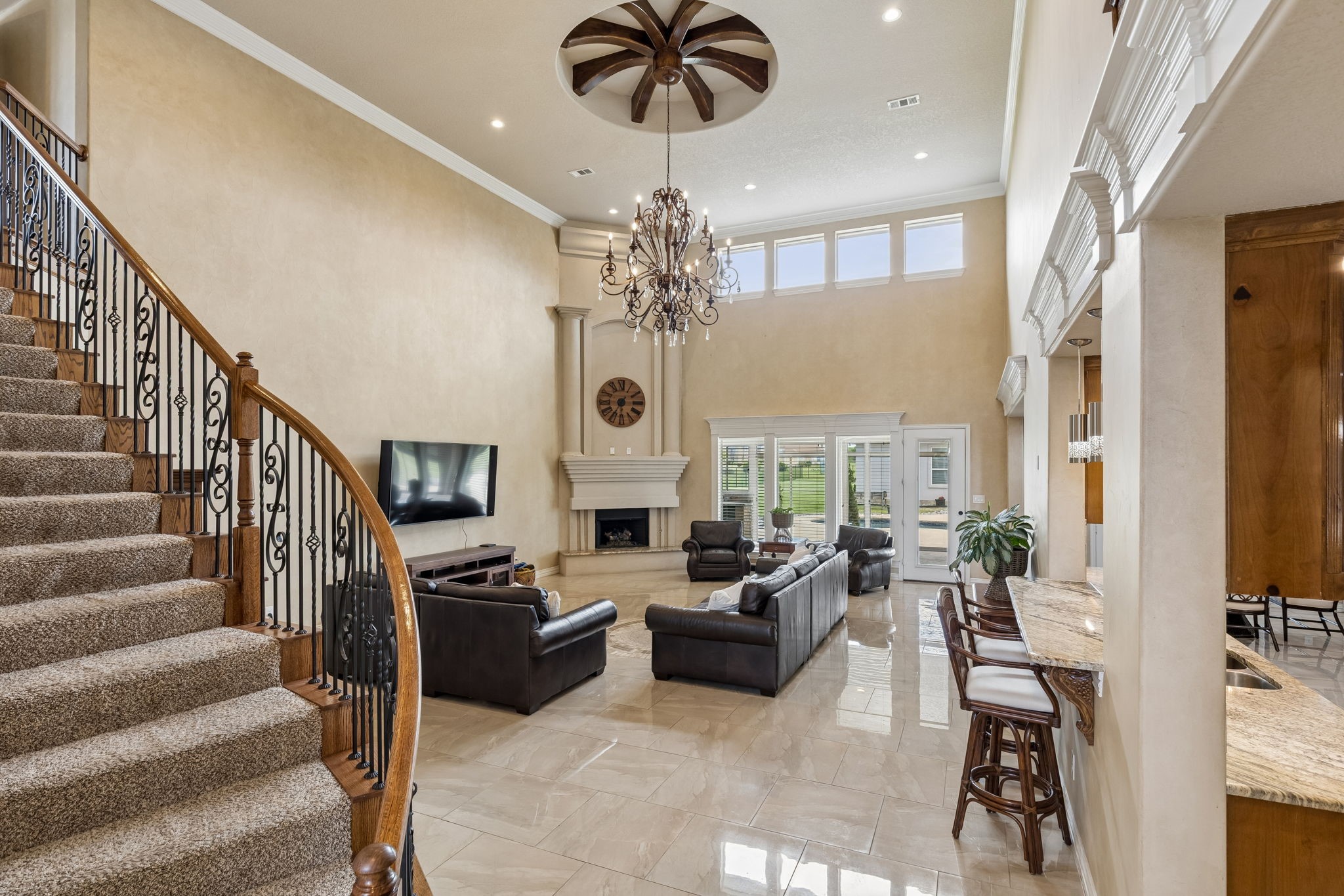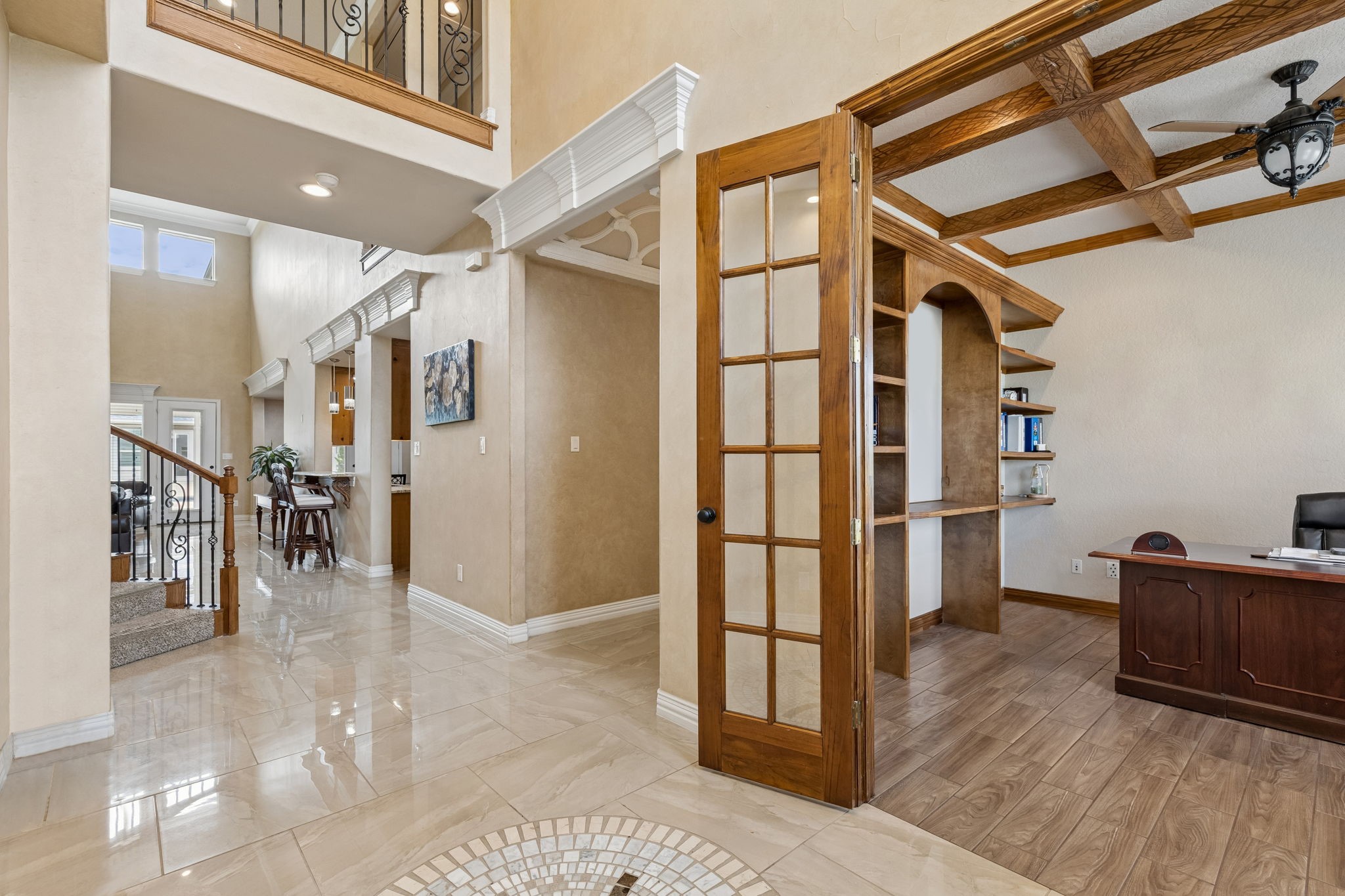 From the moment you enter, you're greeted by impressive ceiling heights, a striking entryway, rich marble floors, and detailed custom craftsmanship that elevate the entire space. The home lives large, with expansive rooms and a seamless flow that feels both open and inviting. The main level offers a highly functional layout with 2 bedrooms, 2.5 baths, and a private study, perfectly suited for multi-generational living or hosting guests in comfort.