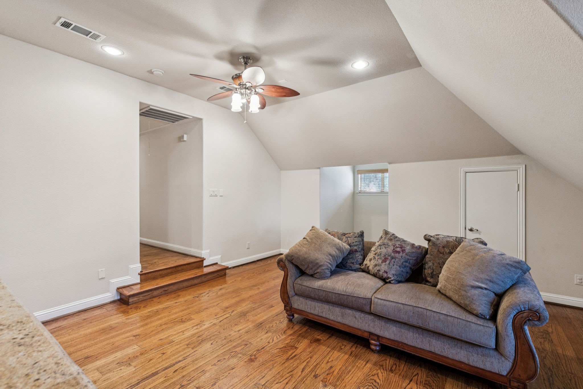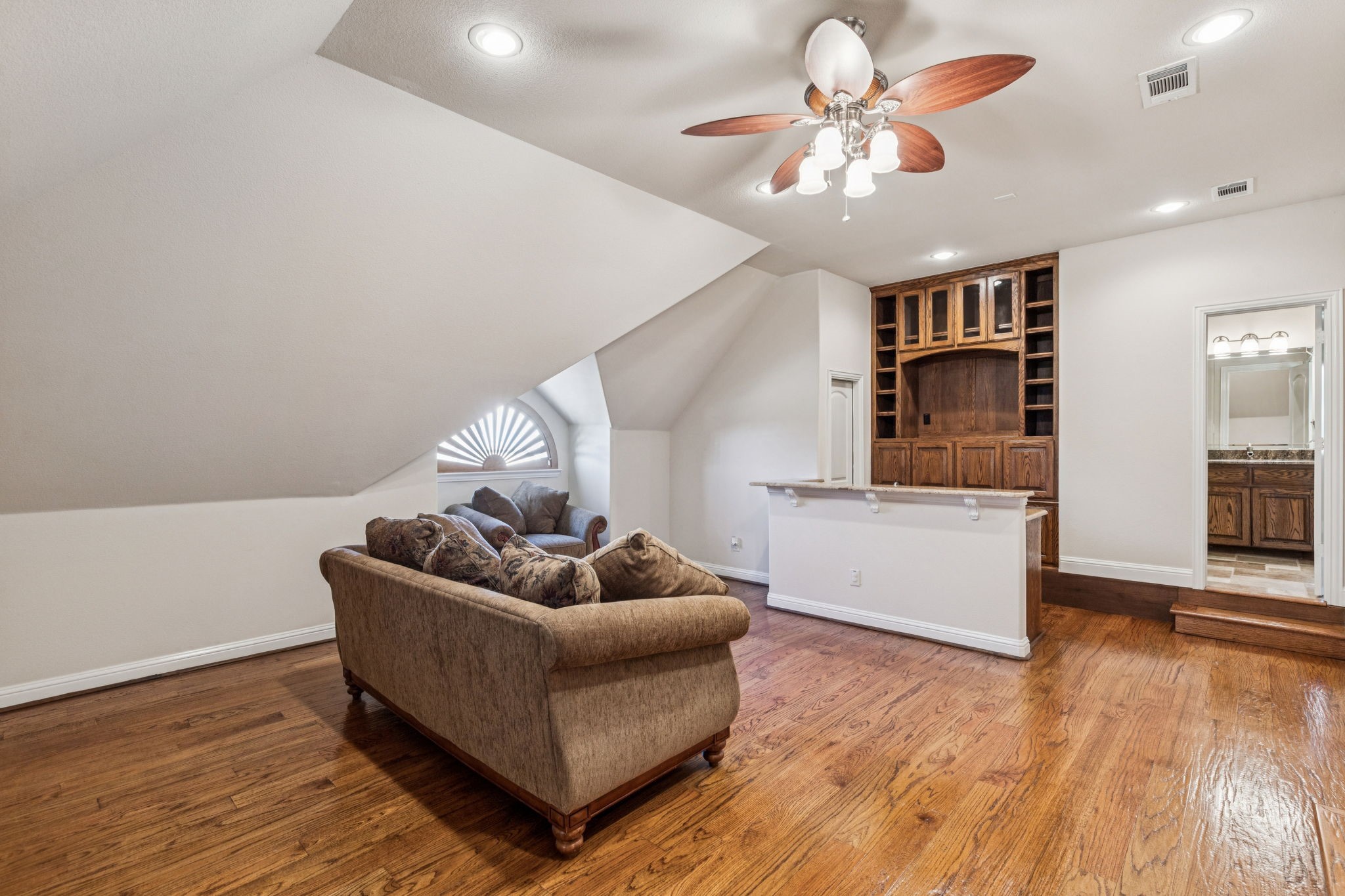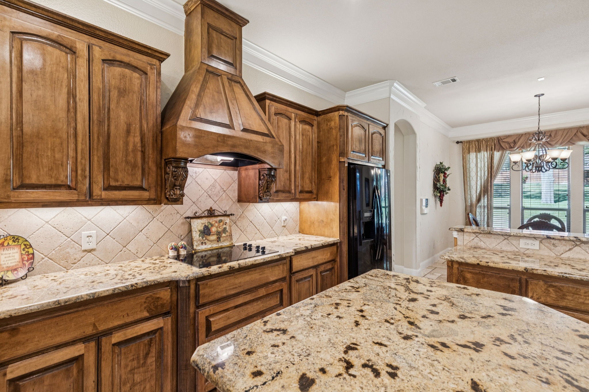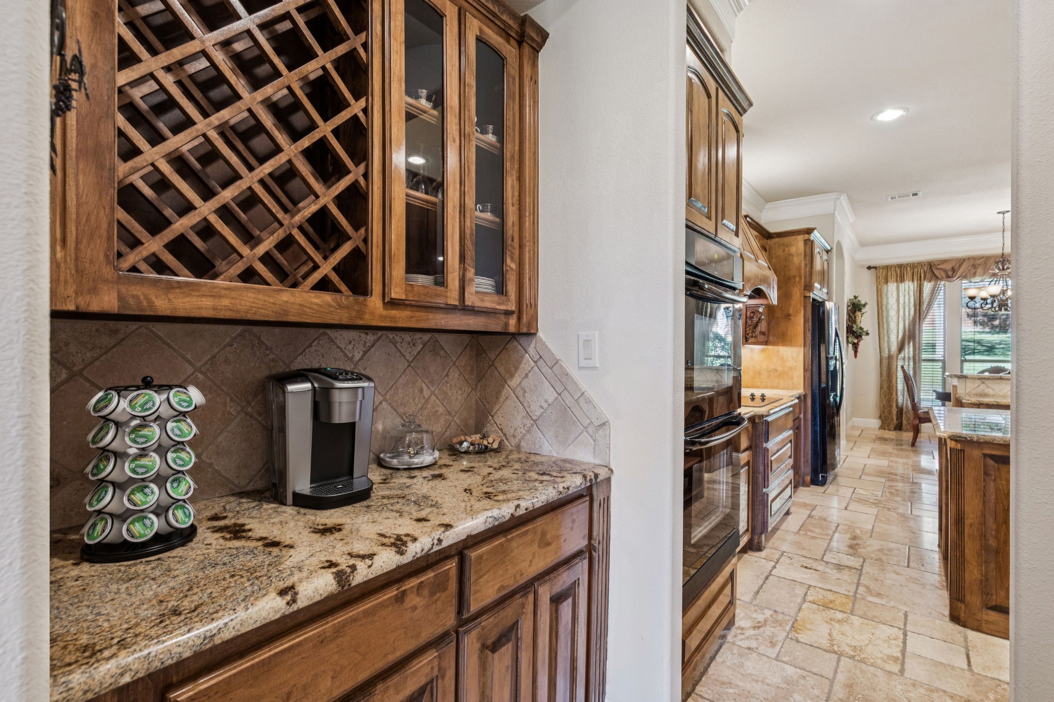 New roof installed July 2025. This stunning 2-story custom home blends luxury and comfort with exceptional craftsmanship throughout. Featuring 4 bedrooms, 4 full baths, and a 3-car garage, this residence offers space, style, and flexibility for any lifestyle. From the moment you enter, you're greeted with beautiful views from the front door, an impressive curved staircase, hand-scraped hardwood floors, and hand-troweled walls. The executive-style office stands out with a wood-beamed ceiling, custom built-ins, and a bay window showcasing scenic views, perfect for working from home. Entertainment spaces abound, including a cinema-style media room and a large game room complete with a granite wet bar and custom shelving. The chef's kitchen includes a butler's pantry and flows seamlessly into a spacious living area with soaring ceilings and designer finishes. The owner's retreat is a true luxury escape with a see-through fireplace, spa-like bath, oversized jetted tub, and a massive double walk-in shower. A private secondary bedroom and bath are located downstairs, with two additional bedrooms and the media room upstairs, offering the perfect balance of privacy and convenience. Additional highlights include travertine flooring, a mud room, and an impressive front entry door. The property offers both a large front yard and backyard, ideal for entertaining or relaxation.