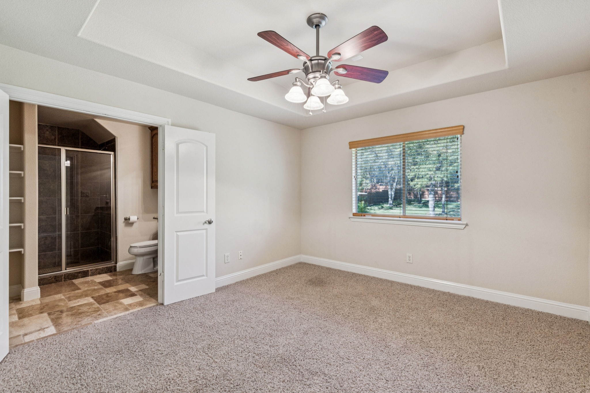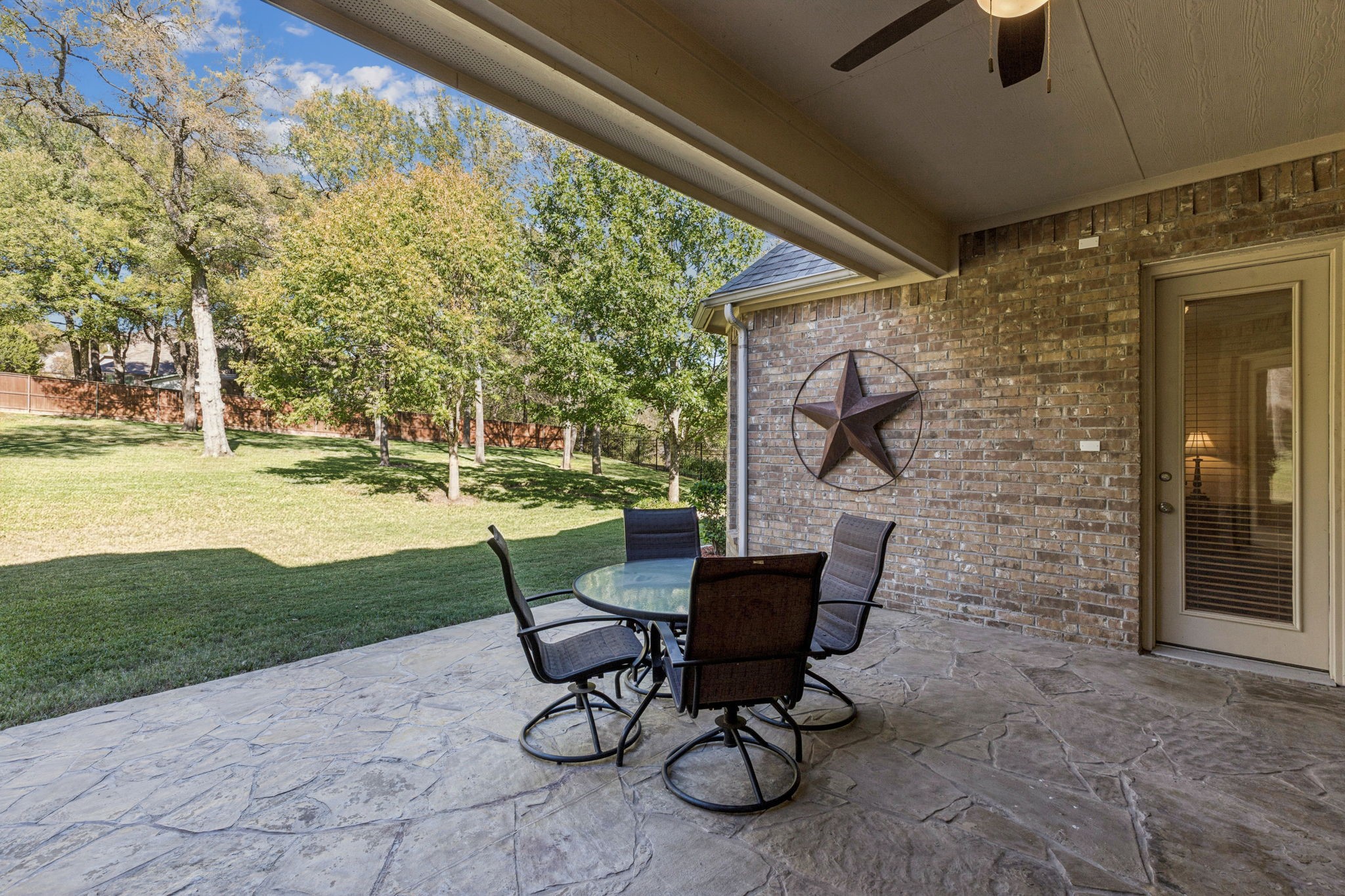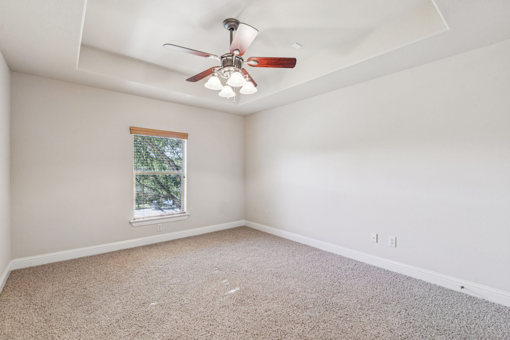 Great opportunity to live in Lake Ridge with views of the Hills! New roof installed July 2025. This stunning 2-story custom home blends luxury and comfort with exceptional craftsmanship throughout. Featuring 4 bedrooms, 4 full baths, and a 3-car garage, this residence offers space, style, and flexibility for any lifestyle. Two bedrooms on the first floor with two additional bedrooms upstairs. From the moment you enter, you're greeted with beautiful views from the front door, an impressive curved staircase, hand-scraped hardwood floors, and hand-troweled walls. The executive-style office stands out with a wood-beamed ceiling, custom built-ins, and a bay window showcasing scenic views, perfect for working from home. Entertainment spaces abound, including a cinema-style media room and a large game room complete with a granite wet bar and custom shelving. The chef's kitchen includes a butler's pantry and flows seamlessly into a spacious living area with soaring ceilings and designer finishes. The owner's retreat is a true luxury escape with a see-through fireplace, spa-like bath, oversized jetted tub, and a massive double walk-in shower. A private secondary bedroom and bath are located downstairs, with two additional bedrooms and the media room upstairs, offering the perfect balance of privacy and convenience. Additional highlights include travertine flooring, a mud room, and an impressive front entry door. The property offers both a large front yard and backyard, ideal for entertaining or relaxation.