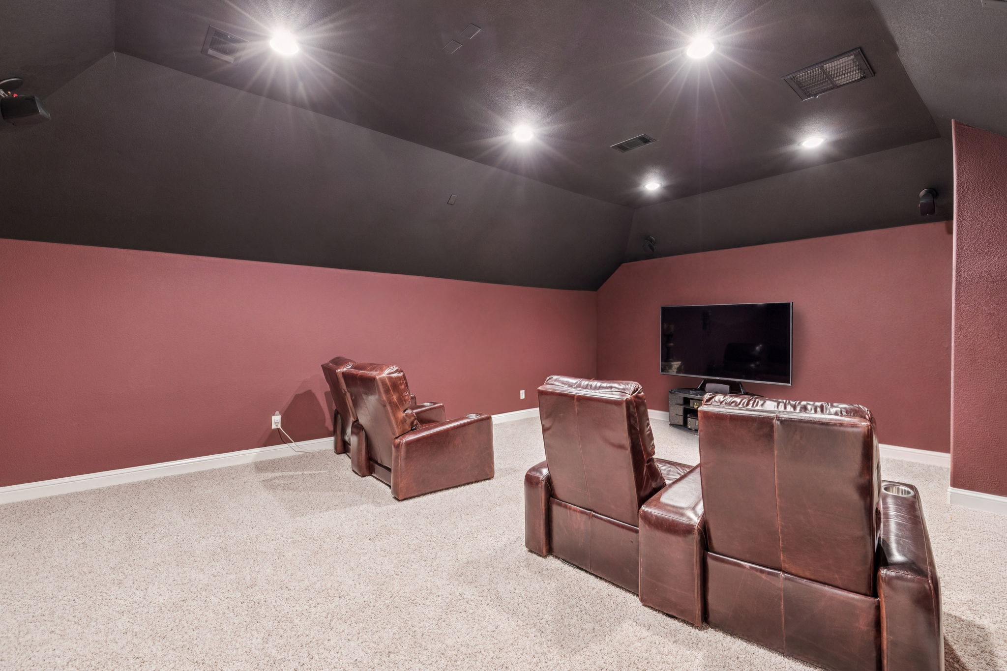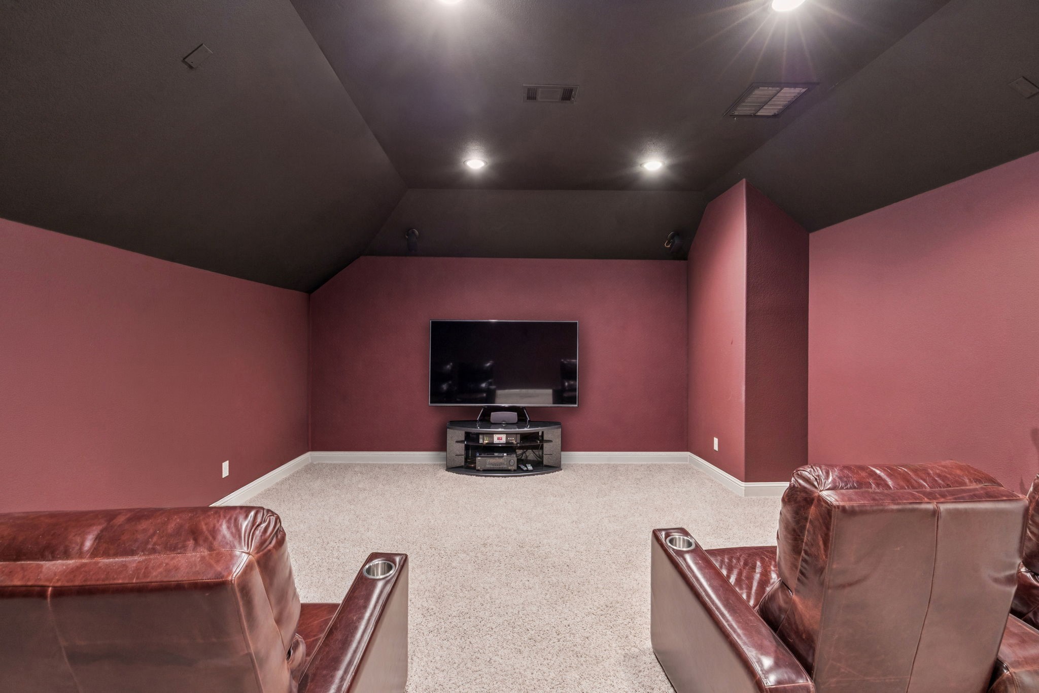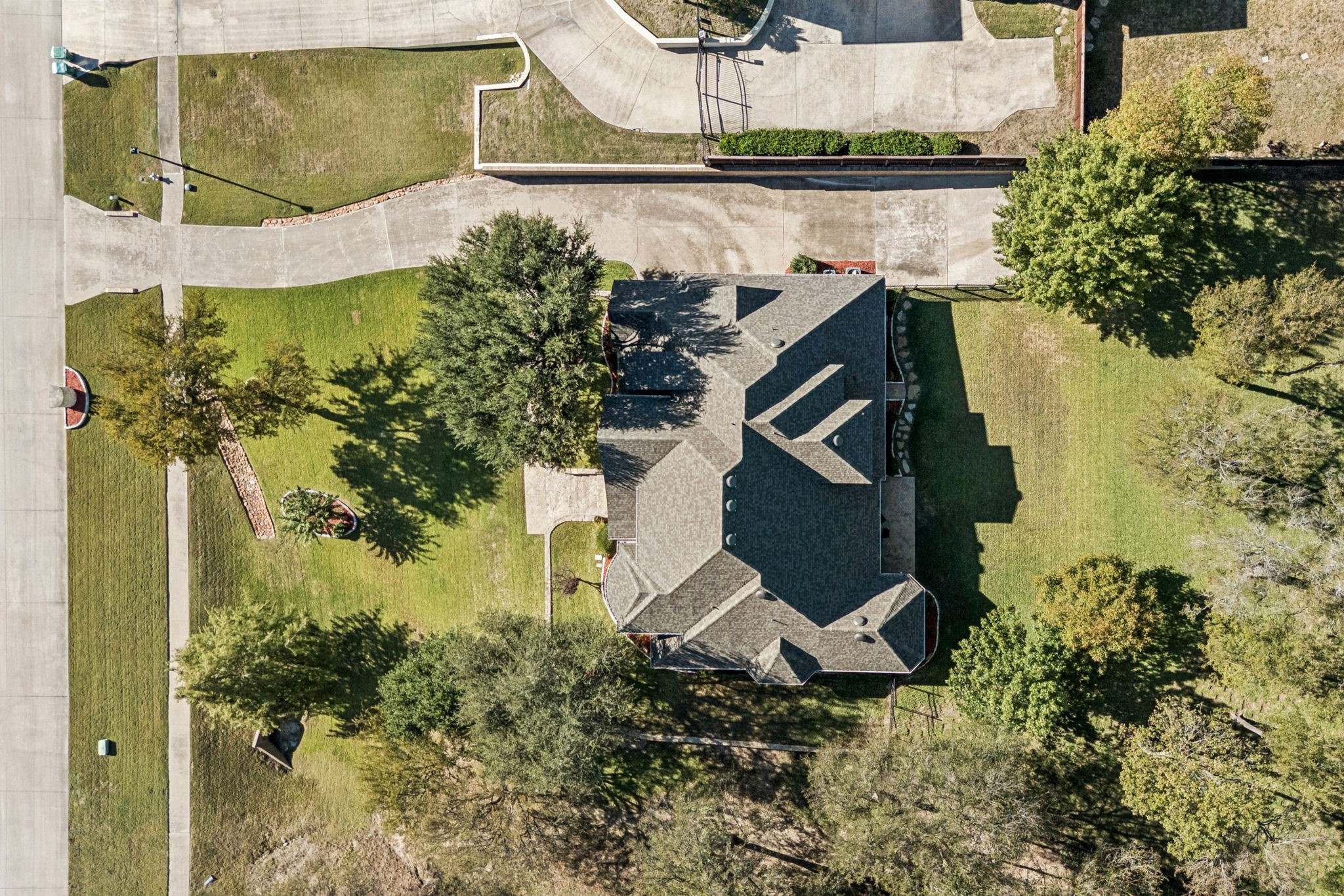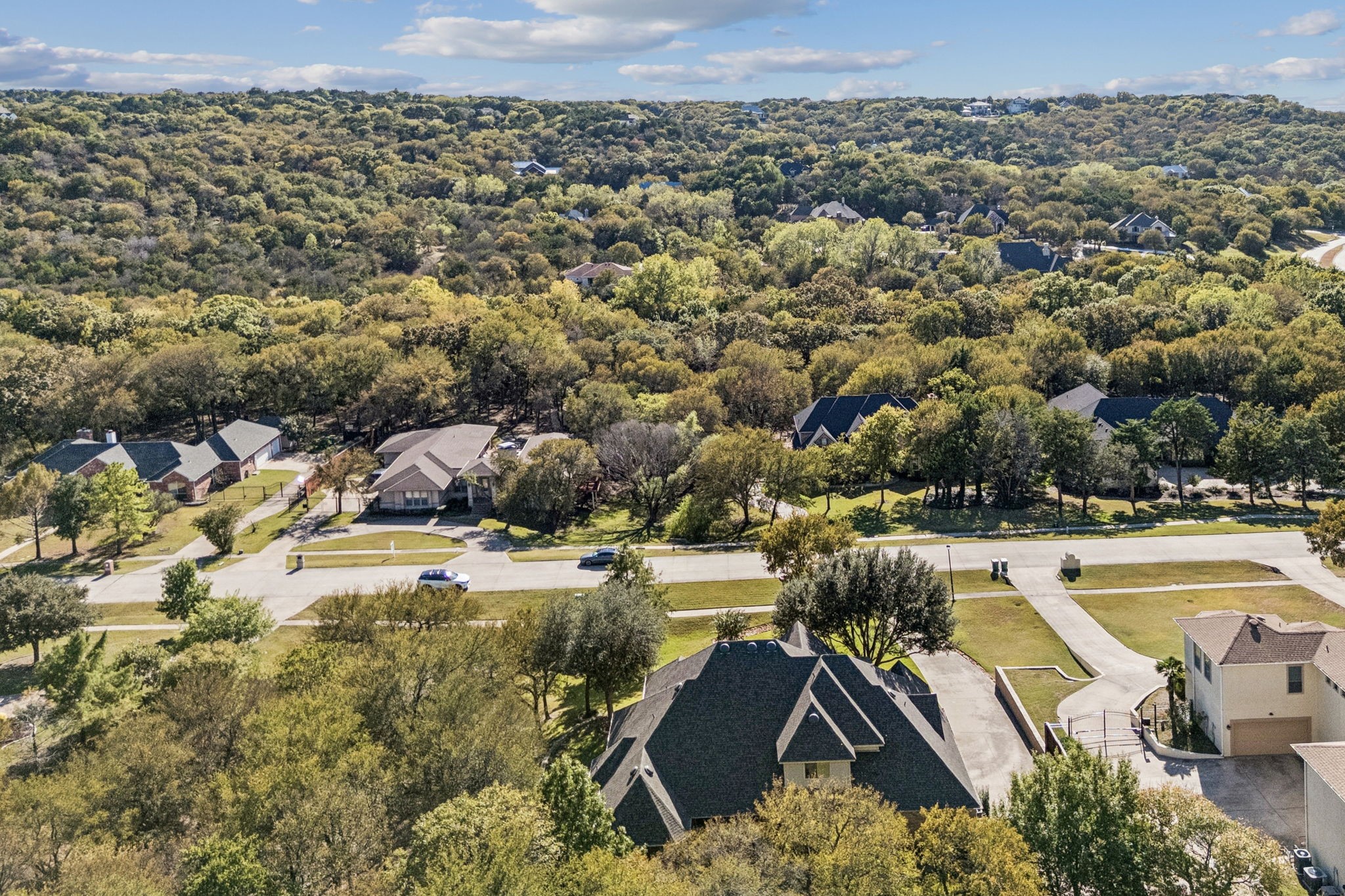 Great opportunity to live in Lake Ridge with views of the Hills! New roof installed July 2025. This stunning 2-story custom home blends luxury and comfort with exceptional craftsmanship throughout. Featuring 4 bedrooms, 4 full baths, and a 3-car garage, this residence offers space, style, and flexibility for any lifestyle. Two bedrooms on the first floor with two additional bedrooms upstairs. From the moment you enter, you're greeted with beautiful views from the front door, an impressive curved staircase, hand-scraped hardwood floors, and hand-troweled walls. The executive-style office stands out with a wood-beamed ceiling, custom built-ins, and a bay window showcasing scenic views, perfect for working from home. Entertainment spaces abound, including a cinema-style media room and a large game room complete with a granite wet bar and custom shelving. The chef's kitchen includes a butler's pantry and flows seamlessly into a spacious living area with soaring ceilings and designer finishes. The owner's retreat is a true luxury escape with a see-through fireplace, spa-like bath, oversized jetted tub, and a massive double walk-in shower. A private secondary bedroom and bath are located downstairs, with two additional bedrooms and the media room upstairs, offering the perfect balance of privacy and convenience. Additional highlights include travertine flooring, a mud room, and an impressive front entry door. The property offers both a large front yard and backyard, ideal for entertaining or relaxation.