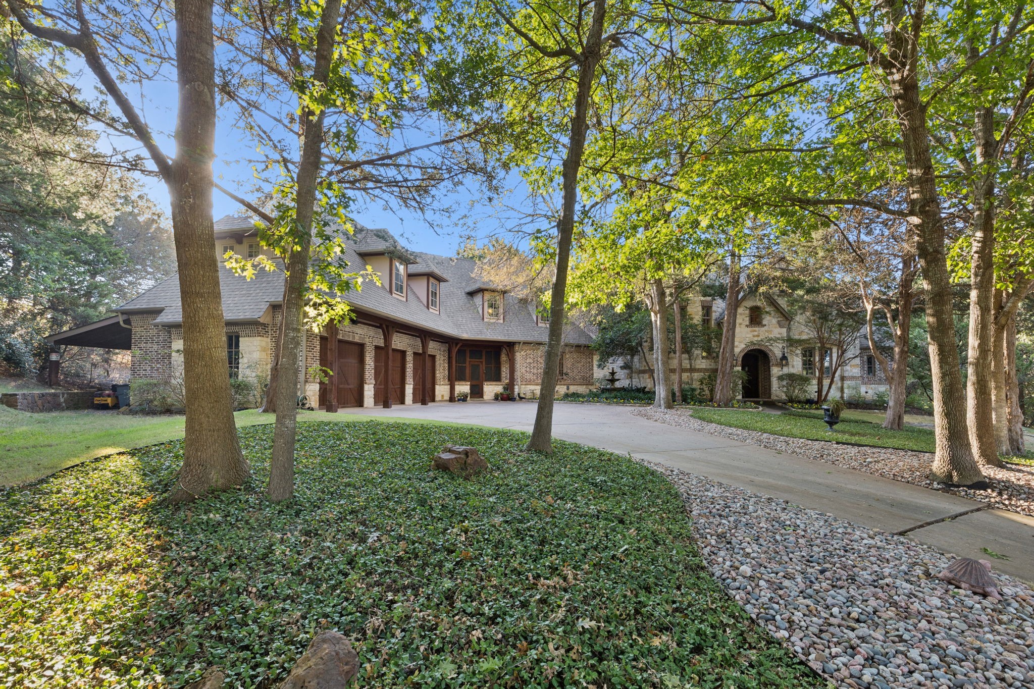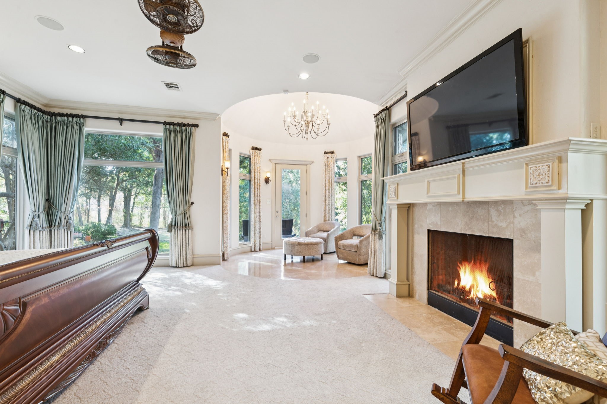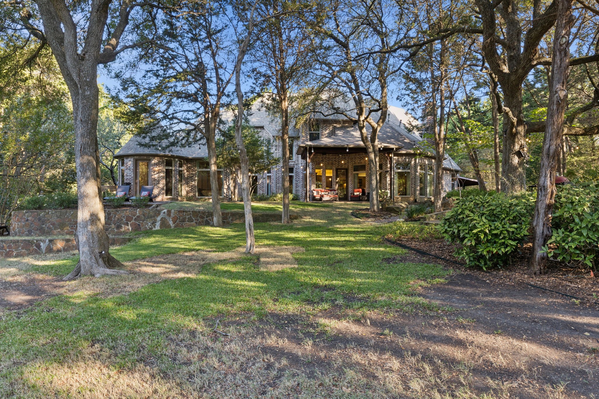 Tucked inside the exclusive gated community of The Timbers of Lake Ridge, this stunning custom estate blends timeless design with modern comfort on nearly an acre of beautifully wooded, landscaped grounds. Offered fully furnished, this home is move-in ready with designer selections throughout. A long private drive and gas-lit porch lamps set the tone before you even step inside.