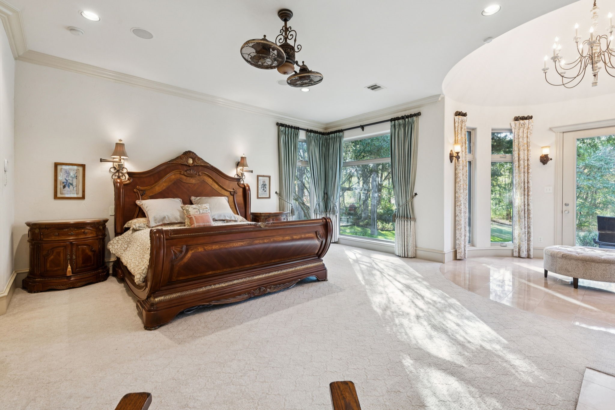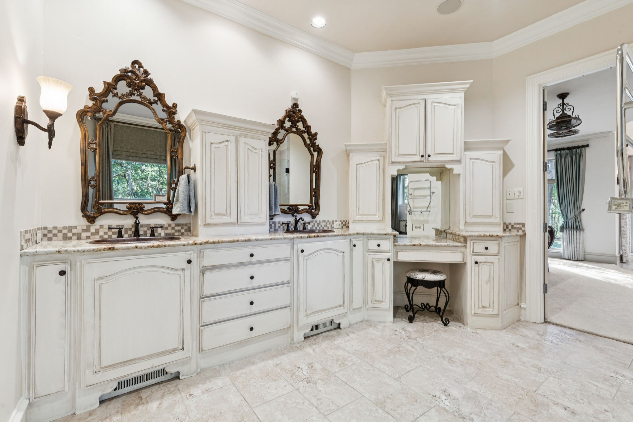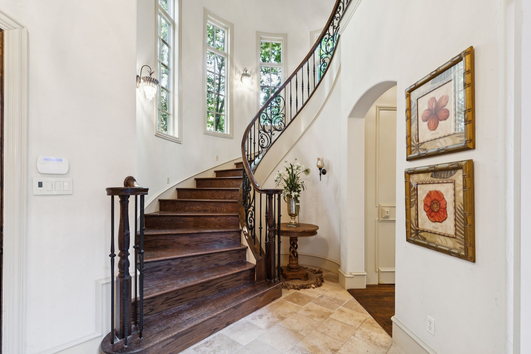 Tucked inside the exclusive gated community of The Timbers of Lake Ridge, this stunning custom estate blends timeless design with modern comfort on nearly an acre of beautifully wooded, landscaped grounds. Offered fully furnished, this home is move-in ready with designer selections throughout. A long private drive and gas-lit porch lamps set the tone before you even step inside.