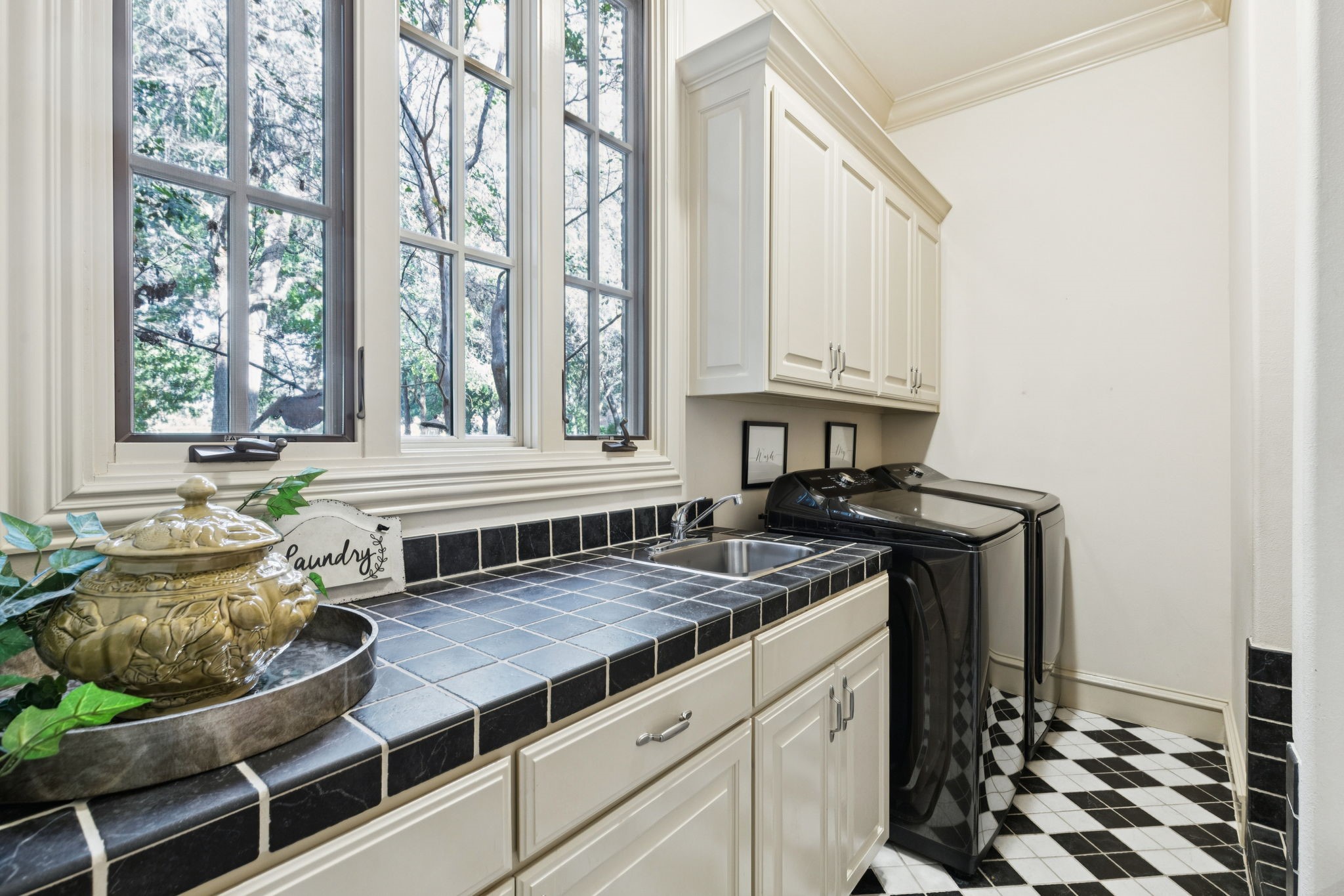 Outside, the backyard oasis offers multiple patios, a built-in fire pit with seating, and plenty of room to entertain or unwind under the trees. The slate-tiled mudroom off the oversized 3-car garage even includes space for garden tools or hobbies.