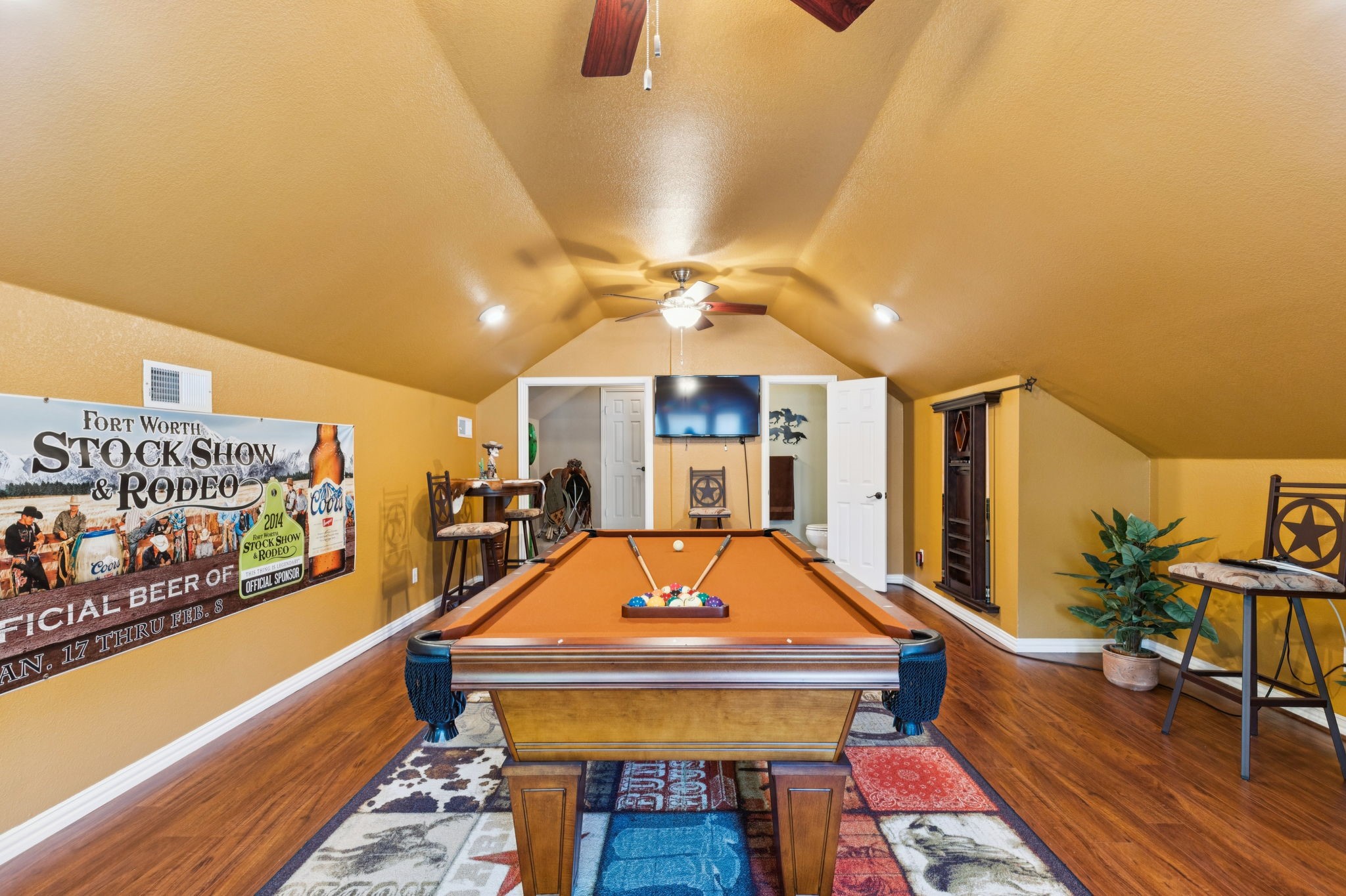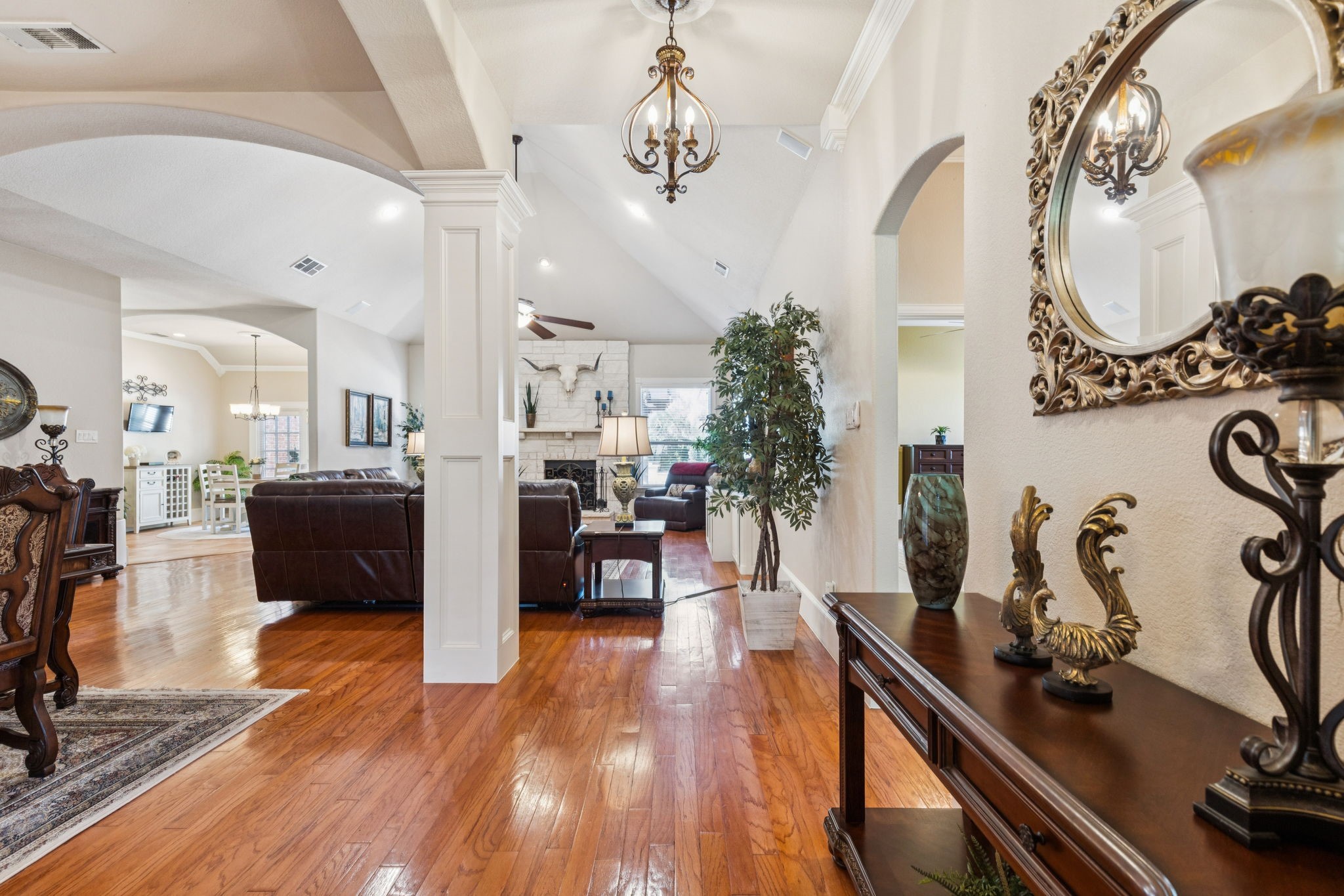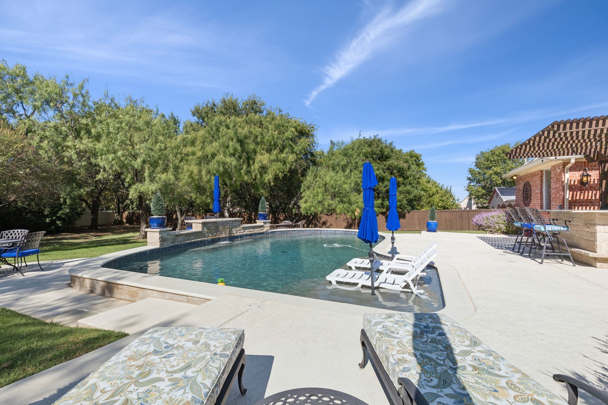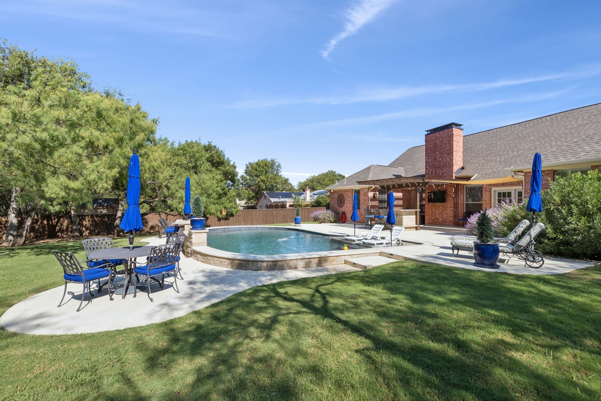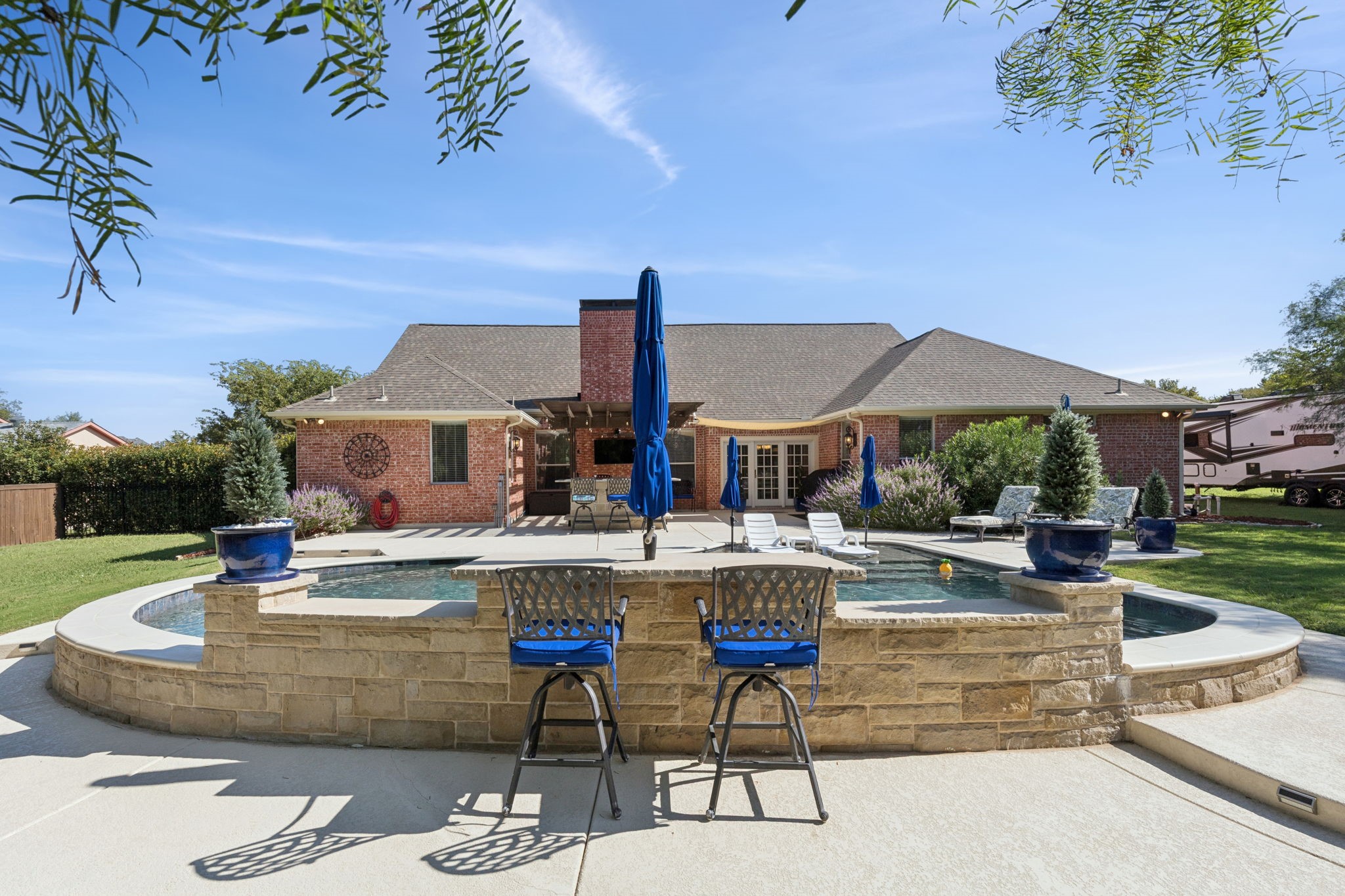 ****Sunday's OPEN HOUSE has been CANCELLED due to the house going under contract****Located in the prestigious Lake Ridge community, this beautifully updated home sits on a serene 1-acre cul-de-sac lot, offering the perfect blend of elegance, comfort, and space. From the inviting front porch and side porch to the expansive backyard patio, this property was designed with entertaining and everyday living in mind. The backyard is a true retreat with lush landscaping, a sparkling pool, plenty of open yard space, and even room to park your RV. Step inside through the arched front door and you're welcomed into a bright, open floor plan with gleaming hardwood floors, vaulted ceilings, and an updated fireplace as the centerpiece of the living room. The formal dining space flows seamlessly into the gourmet kitchen, complete with Italian-tiled floors, recently updated granite counters, a stainless steel farm sink, top-of-the-line Bosch appliances, walk-in pantry, and built-in planning desk. The split-bedroom layout provides privacy, while the upstairs game or media room adds versatile living space. The primary suite features a spa-like bath with views overlooking the pool, a jetted tub, walk-in shower, and a generous walk-in closet. Abundant windows throughout the home with natural light. Prime Location - Just minutes from Joe Pool Lake, Tangle Ridge Golf Club, shopping, dining, and entertainment. Easy access to Downtown Dallas, DFW Airport, and Six Flags Arlington! **COMES FULLY FURNISHED***