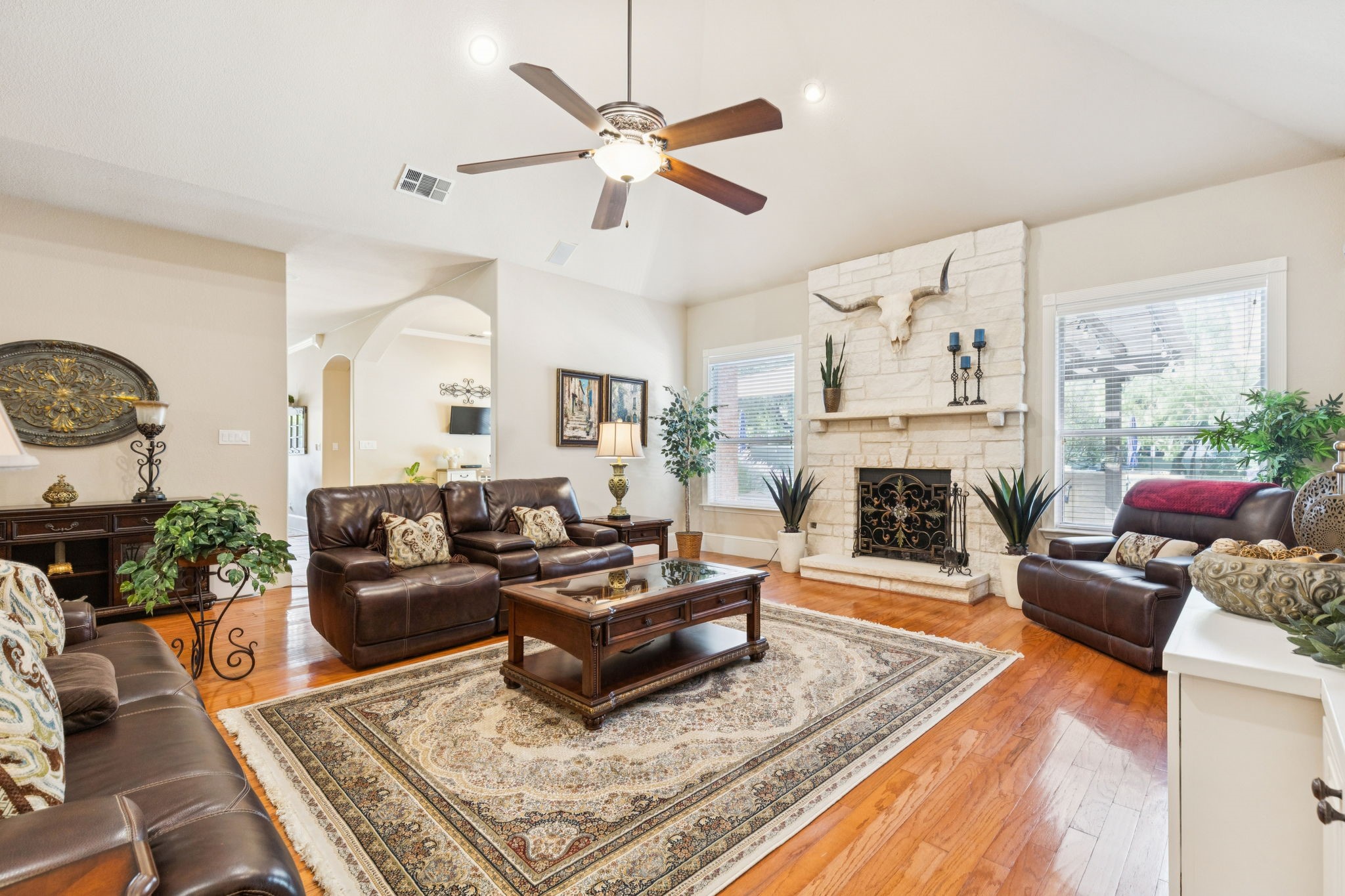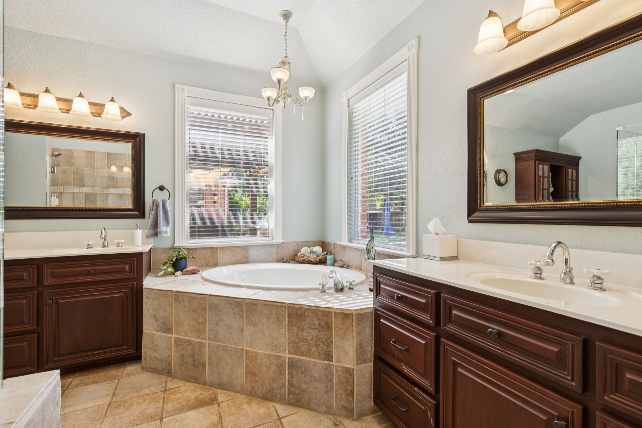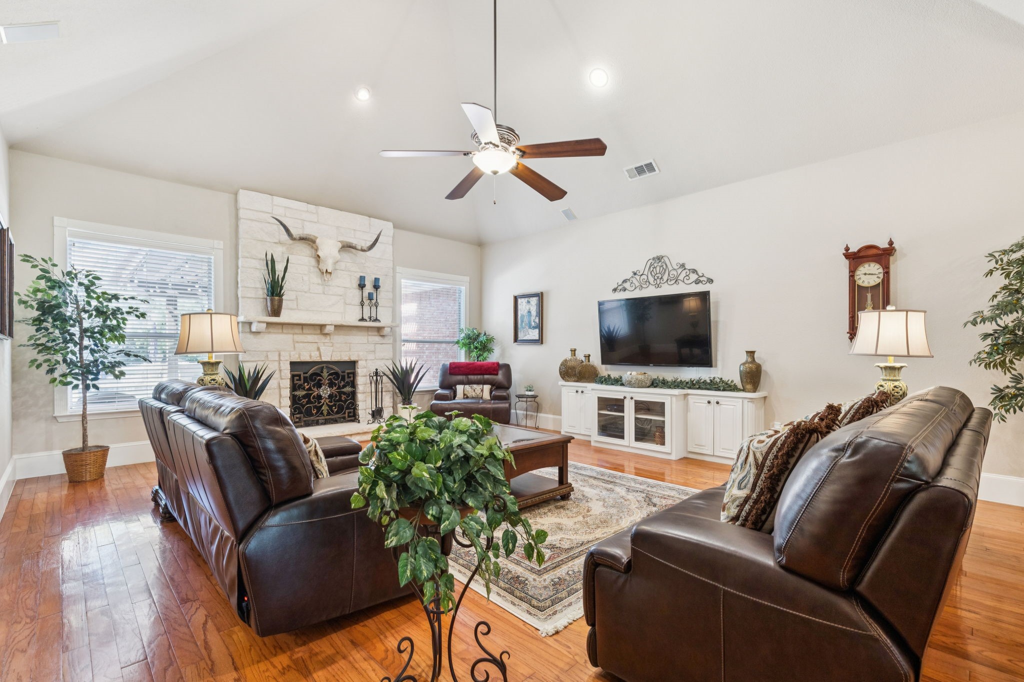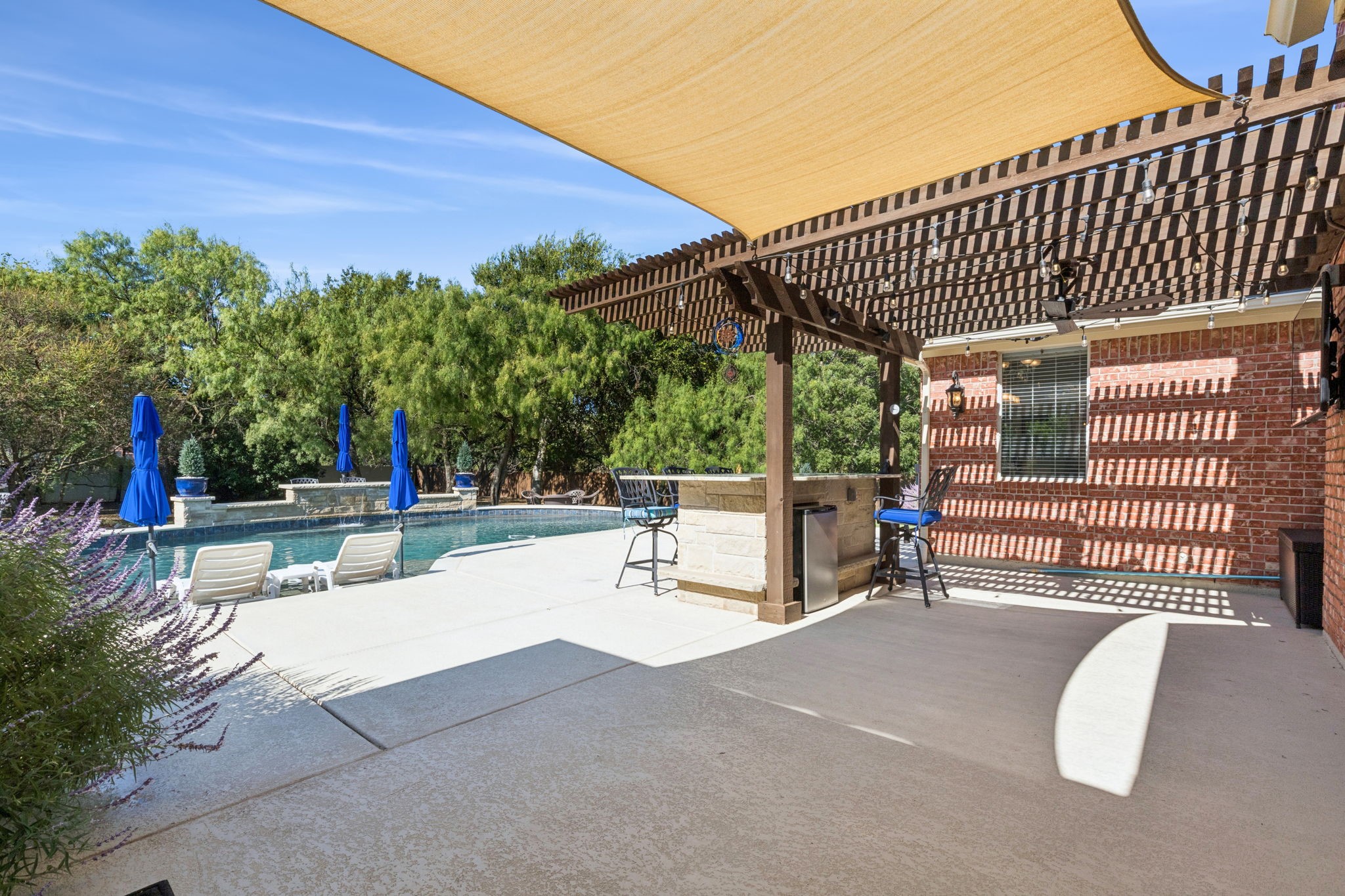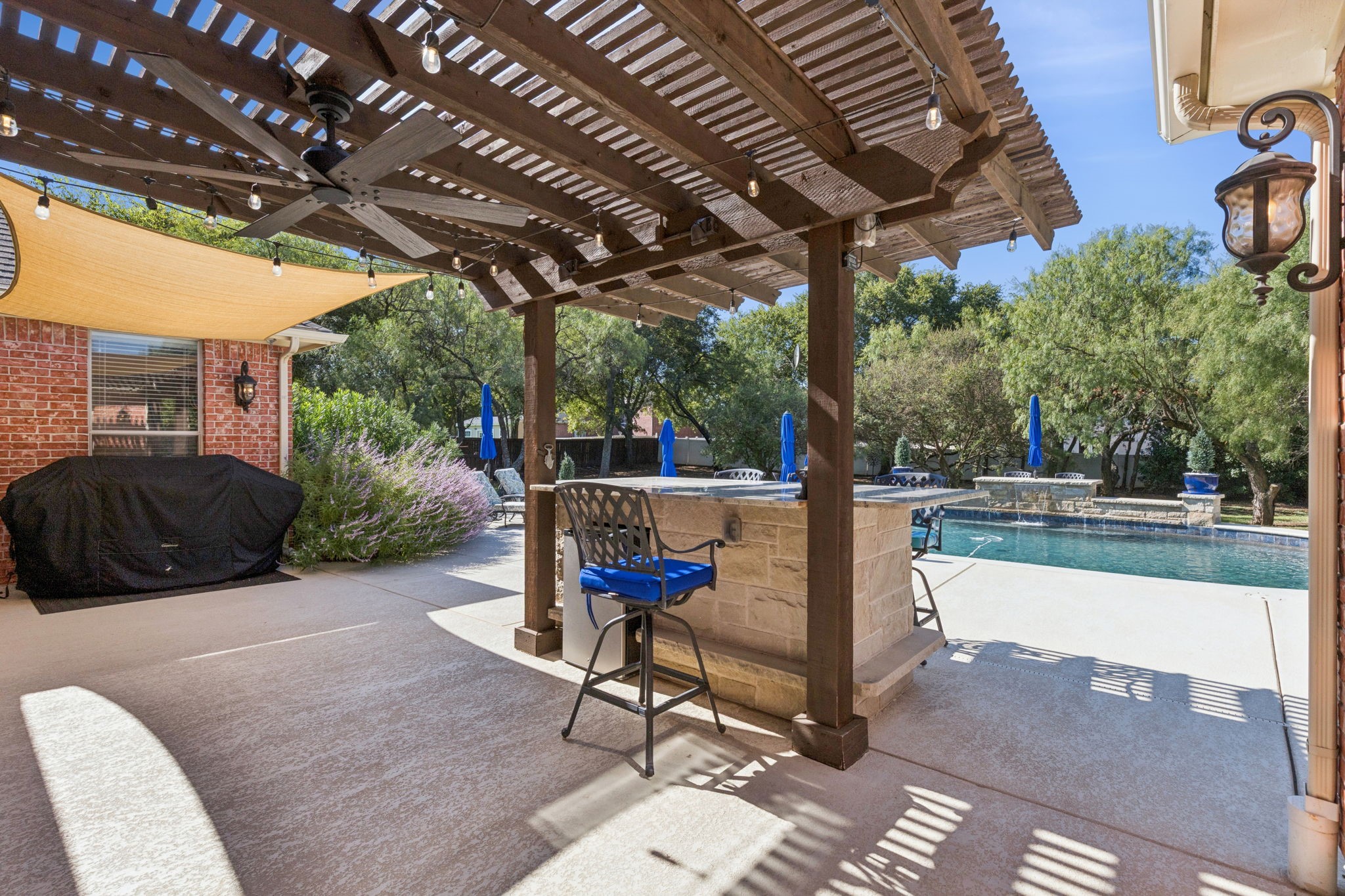 ****Sunday's OPEN HOUSE has been CANCELLED due to the house going under contract****Located in the prestigious Lake Ridge community, this beautifully updated home sits on a serene 1-acre cul-de-sac lot, offering the perfect blend of elegance, comfort, and space. From the inviting front porch and side porch to the expansive backyard patio, this property was designed with entertaining and everyday living in mind. The backyard is a true retreat with lush landscaping, a sparkling pool, plenty of open yard space, and even room to park your RV. Step inside through the arched front door and you're welcomed into a bright, open floor plan with gleaming hardwood floors, vaulted ceilings, and an updated fireplace as the centerpiece of the living room. The formal dining space flows seamlessly into the gourmet kitchen, complete with Italian-tiled floors, recently updated granite counters, a stainless steel farm sink, top-of-the-line Bosch appliances, walk-in pantry, and built-in planning desk. The split-bedroom layout provides privacy, while the upstairs game or media room adds versatile living space. The primary suite features a spa-like bath with views overlooking the pool, a jetted tub, walk-in shower, and a generous walk-in closet. Abundant windows throughout the home with natural light. Prime Location - Just minutes from Joe Pool Lake, Tangle Ridge Golf Club, shopping, dining, and entertainment. Easy access to Downtown Dallas, DFW Airport, and Six Flags Arlington! **COMES FULLY FURNISHED***